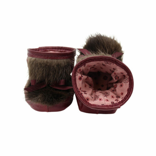 Découvrez le joli petit chausson pour bébés signé Grenier. Ces chaussons garderont les pieds de votre petit bien au chaud et procureront un style unique et magnifique grâce à leur petite boucle et à leur véritable fourrure de castor naturel. C’est un cadeau parfait à offrir lors d’une naissance ou tout simplement à un premier anniversaire !