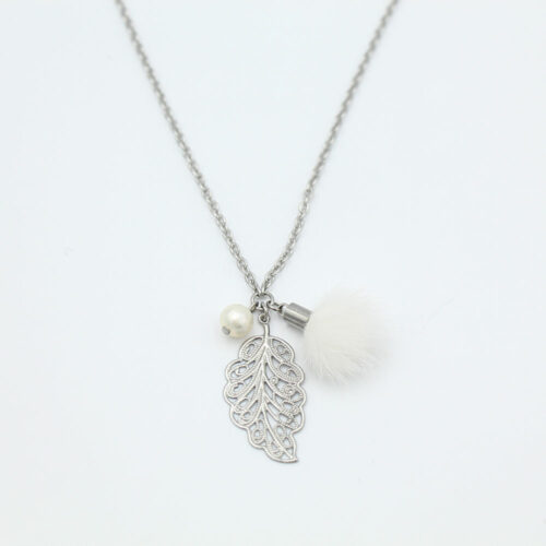 Le collier avec fourrure de vison Estelle complétera avec goût votre tenue! Ce bijou en acier inoxydable présente une délicate chaîne avec une feuille comme ornement. Ajustez-le avec la rallonge à la chaîne pour un ajustement parfait.
