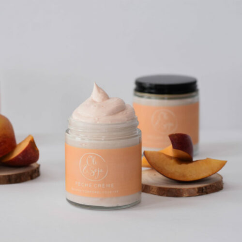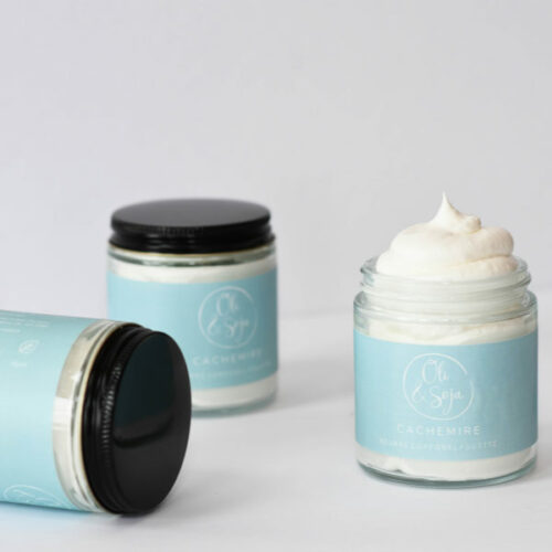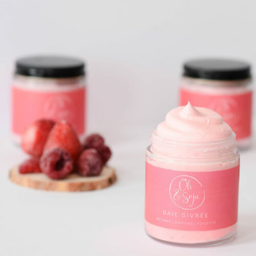 La texture de notre beurre corporel est crémeuse et soyeuse. Ne laisse pas un fini gras après l’application.