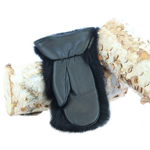 BLACK RACCOON FUR MITTENS OUTDOOR MODEL