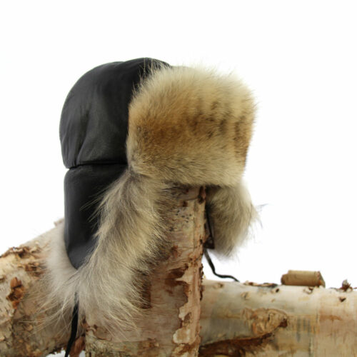 COYOTE FUR AND LEATHER TRAPPER HAT