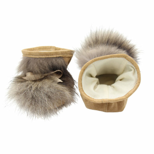 Bottine pour bébé en fourrure de raton finlandais – Pattes d’ours Grenier