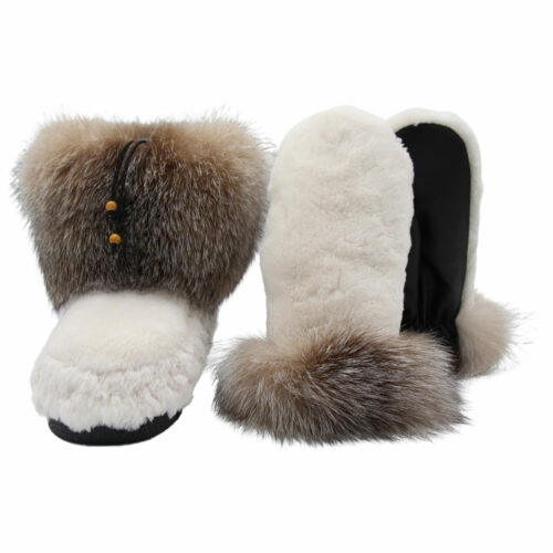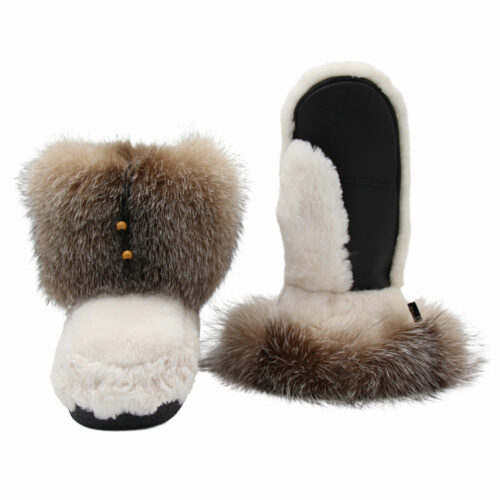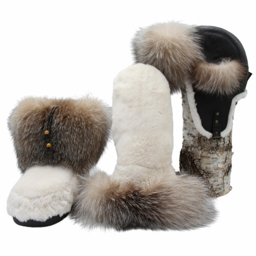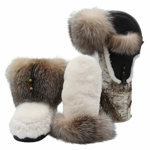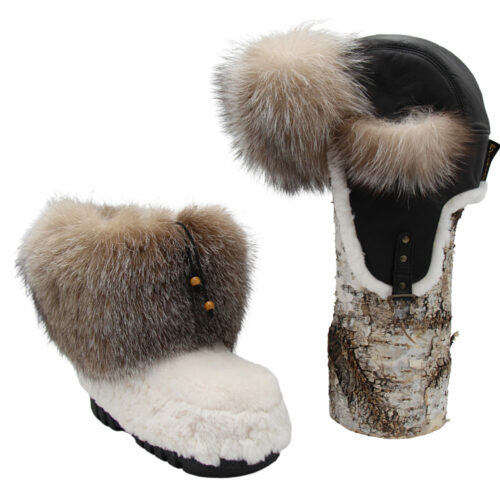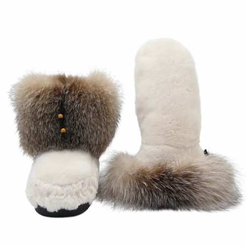 La botte Doudoune est la botte parfaite pour vos activités quotidiennes hivernales.  Elle combine tous les éléments de chaleur nécessaires dans un style plus court et versatile. Un lacet d’ajustement fait le tour de la botte pour empêcher la neige d’entrer. Une large bande de fourrure de renard crystal borde la botte pour lui donner un look époustouflant.