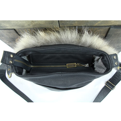 Démarquez-vous avec un sac bandoulière Coureur des bois signé Grenier. Il est l’ultime sac qui fera tourner des têtes grâce à sa fourrure ainsi que son cuir chic et luxueux. La longue ganse bandoulière en cuir est facilement ajustable pour que vous puissiez porter votre sac sur l’épaule ou en diagonale.