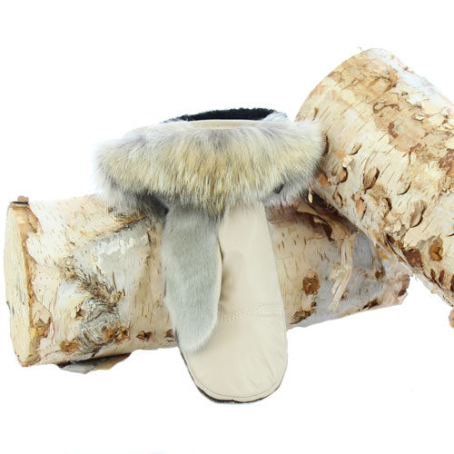 MITAINE EN LOUP-MARIN NATUREL ET COYOTE DE LUXE